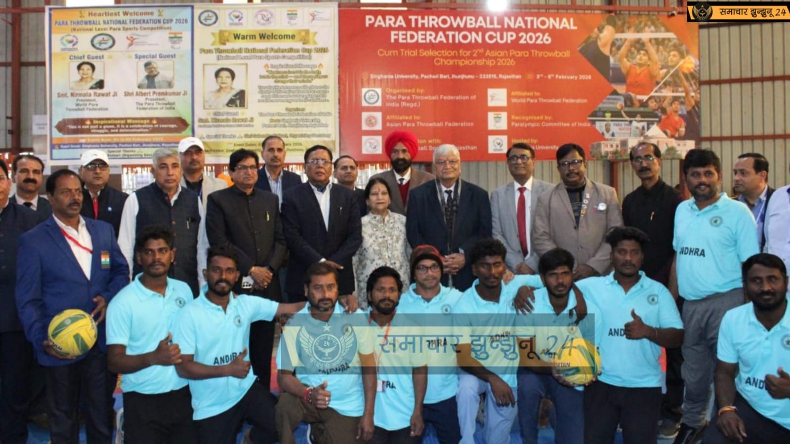 पैरा थ्रोबॉल फेडरेशन ऑफ इंडिया द्वारा आयोजित इस राष्ट्रीय प्रतियोगिता की मेजबानी सिंघानिया विश्वविद्यालय कर रहा है। उद्घाटन समारोह की शुरुआत अतिथियों के स्वागत, हाई-टी, वृक्षारोपण और दीप प्रज्वलन के साथ हुई, जिसके बाद सभी गणमान्य अतिथियों को शॉल और स्मृति-चिह्न भेंट कर सम्मानित किया गया।