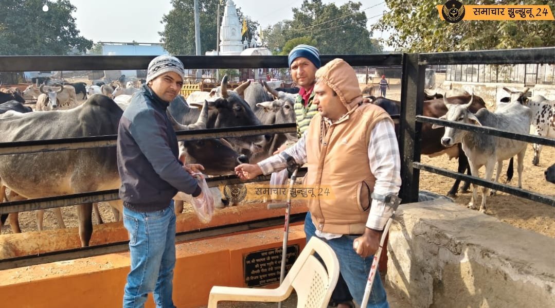भाजपा प्रदेश उपाध्यक्ष मुकेश दाधीच के जन्मदिन पर चिड़ावा में गौसेवा, गौशाला में गुड़-दलिया वितरण कर दिया सेवा का संदेश