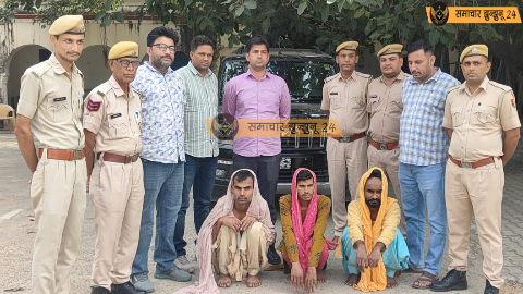 चिड़ावा: चिड़ावा पुलिस ने स्कॉर्पियो चोरी मामले में 24 घंटे के भीतर बड़ी कार्रवाई करते हुए 3 शातिर कार चोरों को हरियाणा से दबोच लिया। इनमें झुंझुनूं का टॉप 10 अपराधी और 10 हजार का इनामी बदमाश कृष्ण कुमार नायक भी शामिल है। गिरफ्तारी के बाद पुलिस ने जो किया, वह पूरे चिड़ावा में चर्चा का विषय बन गया। पुलिस ने चोरों की महिलाओं के भेष में बाजार में परेड निकाली।