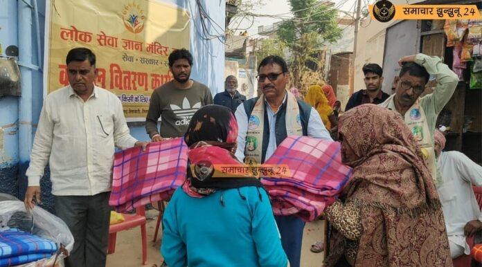 चिड़ावा: शहर में ठंड का प्रकोप बढ़ने के साथ ही जरूरतमंद परिवारों के लिए राहत की पहल सामने आई है। नर सेवा ही नारायण सेवा के संकल्प के साथ लोक सेवा ज्ञान मंदिर ट्रस्ट द्वारा सुथार बस्ती में कंबल वितरण कर मानवता और सामाजिक सरोकारों की मिसाल पेश की गई। इस सेवा प्रकल्प के तहत 34 जरूरतमंद परिवारों को कंबल उपलब्ध कराए गए, जिससे कड़ाके की सर्दी में उन्हें राहत मिल सकी। यह पहल न केवल सामाजिक संवेदनशीलता को दर्शाती है, बल्कि चिड़ावा में लगातार चल रहे सेवा अभियानों की निरंतरता को भी रेखांकित करती है।