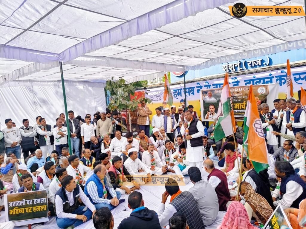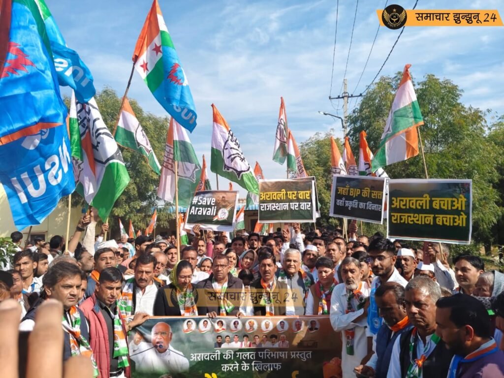 झुंझुनू: जिले में अरावली पर्वतमाला से जुड़े नियमों को लेकर सियासी गर्माहट तेज हो गई है। जिला कांग्रेस कमेटी के तत्वावधान में विद्यार्थी भवन से कलेक्ट्रेट तक निकाले गए पैदल मार्च में कांग्रेस नेताओं और कार्यकर्ताओं ने केंद्र सरकार और राज्य सरकार पर अरावली की “गलत परिभाषा” गढ़कर प्राकृतिक संसाधनों को पूंजीपतियों के हाथों सौंपने का आरोप लगाया। इस विरोध मार्च में बड़ी संख्या में जनप्रतिनिधि, संगठन पदाधिकारी और कार्यकर्ता शामिल हुए, जिससे शहर का राजनीतिक माहौल गरमा गया।
