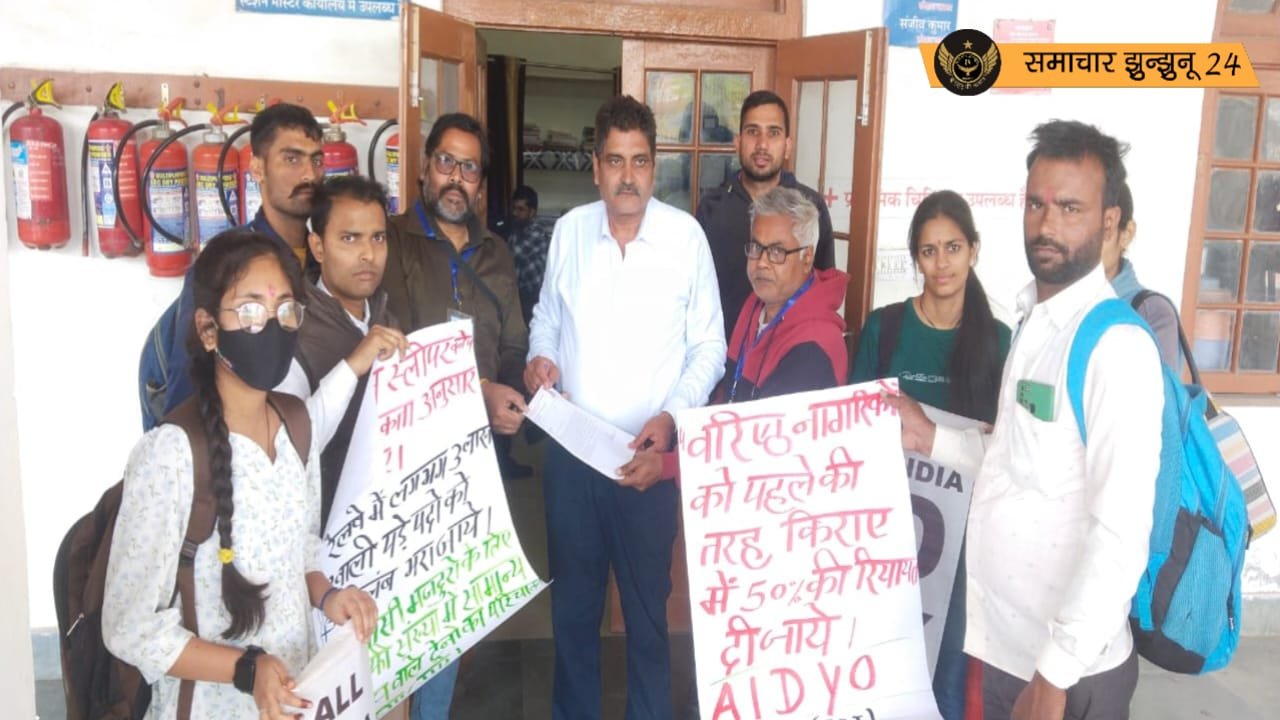 ऑल इंडिया डेमोक्रेटिक यूथ ऑर्गेनाइजेशन (AIDYO) झुंझुनू द्वारा शनिवार, 9 मार्च को जिला कमेटी की ओर से चिड़ावा रेलवे अधिकारी को रेल मंत्री अश्विनी वैष्णव के नाम से चार सूत्री मांगों को लेकर ज्ञापन दिया गया है।