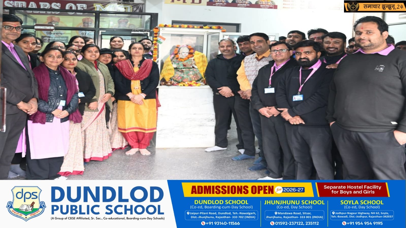 चिड़ावा: झुंझुनूं रोड़ स्थित एम. डी. ग्रुप ऑफ एजुकेशन में 23 जनवरी 2026 को बसंत पंचमी महोत्सव बड़े ही श्रद्धा, उल्लास और सांस्कृतिक गरिमा के साथ मनाया गया। *माँ सरस्वती पूजा, वैदिक विधि-विधान, सांस्कृतिक कार्यक्रमों और प्रेरणादायक संबोधनों के साथ यह आयोजन *शिक्षा, संस्कृति और आध्यात्मिकता का अद्भुत संगम बन गया।
