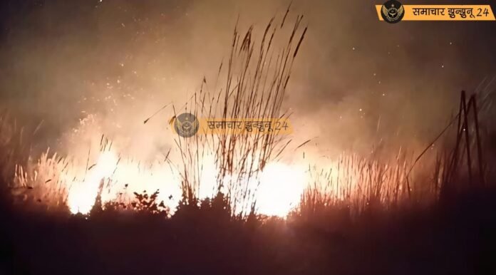 चिड़ावा: क्षेत्र में एक बार फिर आगजनी की घटना ने प्रशासनिक तैयारियों पर सवाल खड़े कर दिए। किशोरपुरा और श्यामपुरा गांवों के बीच स्थित कच्चे रास्ते पर बने जोहड़ में शनिवार देर शाम अचानक भीषण आग लग गई, जिससे जोहड़ में लगे पूले (सूखी घांस) और आसपास के पेड़-पौधे जलकर खाक हो गए। समय रहते दमकल नहीं पहुंचने पर ग्रामीणों को स्वयं मोर्चा संभालना पड़ा, अन्यथा बड़ा हादसा हो सकता था।