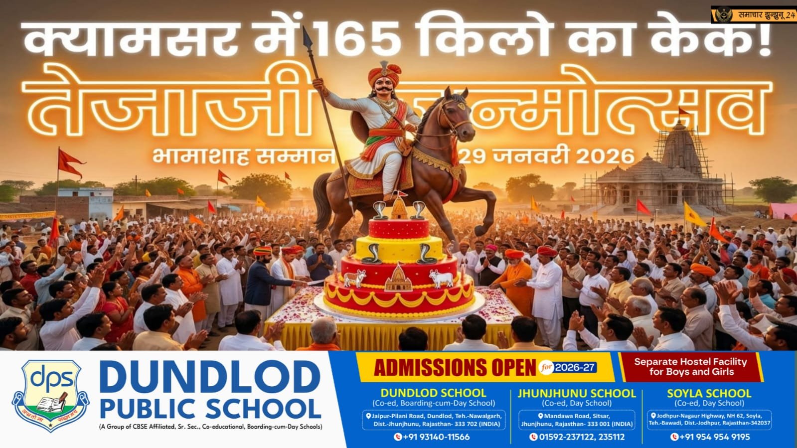चिड़ावा: क्षेत्र के क्यामसर गांव में 29 जनवरी 2026 को लोकदेवता वीर तेजाजी महाराज का जन्मदिन भव्य रूप से मनाया जाएगा। निर्माणाधीन तेजाजी मंदिर परिसर में 165 किलो का विशाल केक काटकर जन्मोत्सव आयोजित किया जाएगा, साथ ही मंदिर निर्माण में सहयोग देने वाले भामाशाहों का सम्मान भी किया जाएगा।