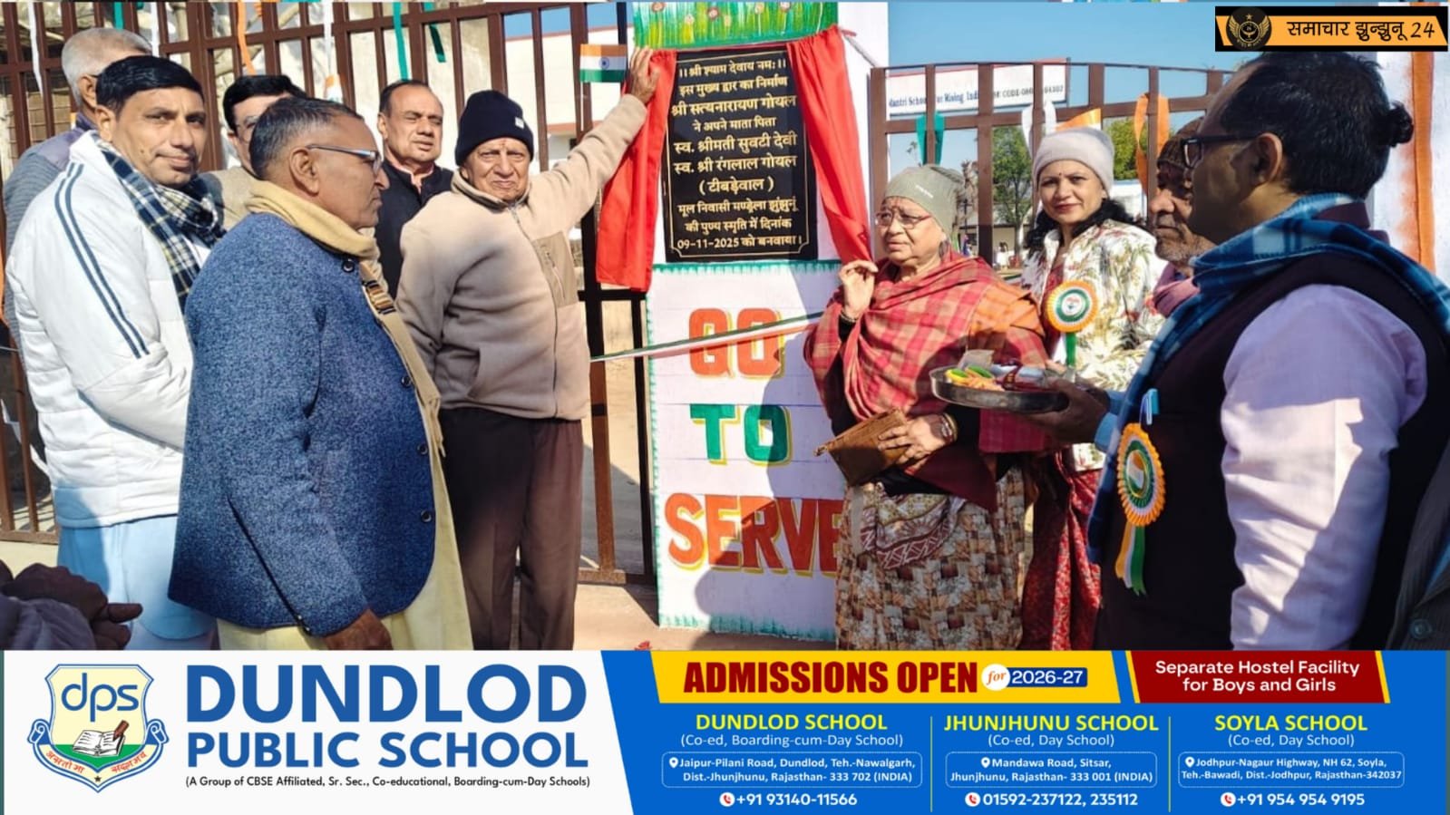 समारोह के दौरान भामाशाह सत्यनारायण गोयल द्वारा लगभग तीन लाख रुपये की लागत से निर्मित विद्यालय के मुख्य द्वार का उद्घाटन किया गया। यह योगदान विद्यालय के आधारभूत ढांचे को मजबूत करने के साथ-साथ शिक्षा के प्रति सामाजिक सहभागिता का प्रेरणादायक उदाहरण बना।
