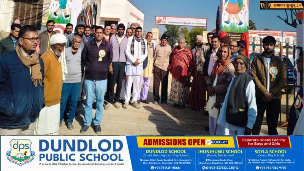 सूरजगढ़: ग्राम जीणी स्थित पीएम श्री महात्मा गांधी अंग्रेजी माध्यम राजकीय उच्च माध्यमिक विद्यालय में 77वां गणतंत्र दिवस बड़े उत्साह, गरिमा और देशभक्ति के वातावरण में मनाया गया। समारोह में ग्रामीणों की सक्रिय भागीदारी, जनप्रतिनिधियों की उपस्थिति और विद्यार्थियों की सांस्कृतिक प्रस्तुतियों ने कार्यक्रम को यादगार बना दिया। साथ ही विद्यालय के नव-निर्मित मुख्य द्वार का लोकार्पण भी किया गया, जिससे शिक्षा के बुनियादी ढांचे को मजबूती मिली।