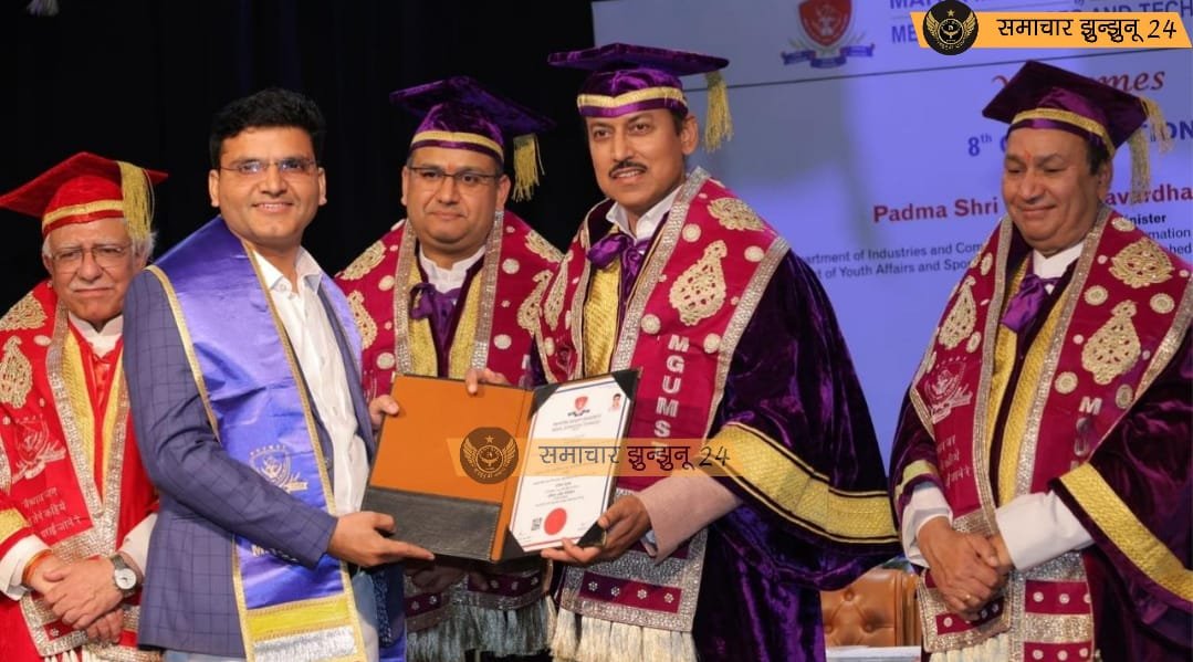 जयपुर में आयोजित महात्मा गांधी यूनिवर्सिटी के 8वें दीक्षांत समारोह में राज्यभर से आए चिकित्सकों और शिक्षाविदों की मौजूदगी रही। इसी गरिमामयी समारोह में डॉ अनिल महला को एमडी (मेडिसिन) की उपाधि प्रदान की गई। समारोह के दौरान कर्नल राज्यवर्धन सिंह राठौड़ ने चिकित्सा क्षेत्र में युवाओं की भूमिका को महत्वपूर्ण बताते हुए उच्च शिक्षा और सेवा भावना पर जोर दिया।