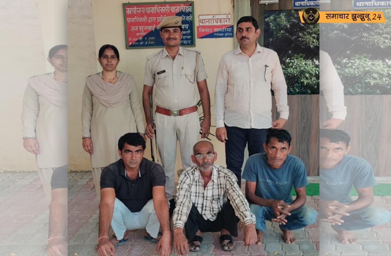 चिड़ावा पुलिस थाने में गठित एक विशेष टीम ने माननीय न्यायिक मजिस्ट्रेट चिड़ावा जिला झुंझुनूं से जारी वारंटों के आधार पर कार्रवाई करते हुए इन आरोपियों को गिरफ्तार किया।
