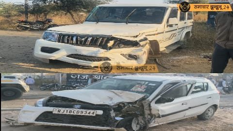 चिड़ावा-मंड्रेला रोड पर भीषण सड़क हादसा, तेज रफ्तार बोलेरो ने कार को मारी टक्कर, महिला अध्यापिका घायल