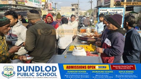 चिड़ावा: मकर संक्रांति 2026 के अवसर पर चिड़ावा कस्बे में सामाजिक सेवा की परंपरा एक बार फिर जीवंत हो उठी। कबुतर खाना बस स्टैंड पर दुकानदारों और स्थानीय भामाशाहों ने सामूहिक प्रयासों से भंडारे का आयोजन शुरू किया, जिसमें सुबह से ही स्थानीय लोग, राहगीर, मजदूर और जरूरतमंद नागरिक स्वादिष्ट व्यंजनों का आनंद ले रहे हैं। चिड़ावा में यह सेवा अभियान सात से आठ वर्षों से लगातार होता आ रहा है, जो समाज में एकता और सेवा भावना की मिसाल पेश करता है।