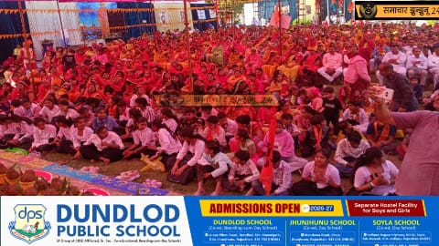 चिड़ावा: शहर की परमहंस बस्ती में टिबड़ा गेस्ट हाउस में आयोजित विराट हिंदू सम्मेलन और भव्य कलश यात्रा ने रविवार को पूरे क्षेत्र को धार्मिक ऊर्जा से सराबोर कर दिया। 1101 कलशों और धर्म ध्वजाओं के साथ निकली शोभायात्रा, समरसता यज्ञ, राम-लक्ष्मीबाई सहित धार्मिक झांकियों और मातृशक्ति की व्यापक भागीदारी ने कार्यक्रम को ऐतिहासिक बना दिया।