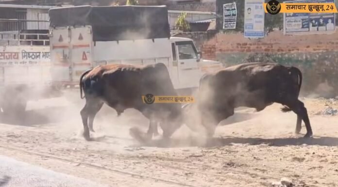 प्रत्यक्षदर्शियों के अनुसार रानी सती दादी मंदिर के सामने मुख्य मार्ग पर अचानक दो सांड आपस में भिड़ गए। देखते ही देखते यह लड़ाई इतनी उग्र हो गई कि सड़क से गुजरने वाले राहगीर और वाहन चालक सहम गए। आम रास्ता पूरी तरह जाम हो गया और लोग इधर-उधर भागकर अपनी जान बचाते नजर आए। सांडों की लड़ाई के चलते आसपास के दुकानदारों ने भी अपने प्रतिष्ठान बंद कर दिए।