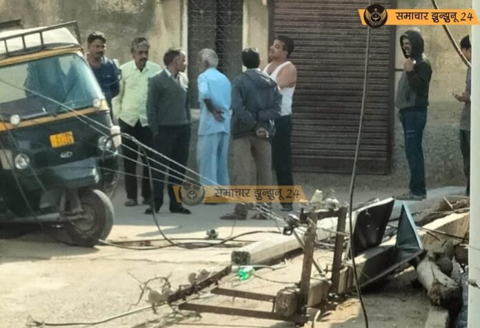 चिड़ावा: शहर के वार्ड नंबर 2 स्थित गूगोजी की ढाणी में उस समय अफरा-तफरी मच गई, जब दो सांड आपस में लड़ते हुए सड़क किनारे लगे विद्युत पोल से टकरा गए। टक्कर इतनी जोरदार थी कि जर्जर अवस्था में खड़ा पुराना पोल टूटकर सड़क पर गिर गया, वहीं उसके पास लगाया गया नया पोल भी असंतुलित होकर धराशायी हो गया। अचानक हुए इस घटनाक्रम से पूरे मोहल्ले में दहशत का माहौल बन गया, हालांकि राहत की बात यह रही कि घटना के समय कोई राहगीर इसकी चपेट में नहीं आया।