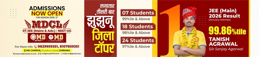 एम.डी. ग्रुप ऑफ एजुकेशन शिक्षा के क्षेत्र में अपने नवाचार और उत्कृष्ट परिणामों के लिए जाना जाता है। यहां वर्तमान में आईआईटी और नीट जैसी प्रतियोगी परीक्षाओं की कक्षाएं भी संचालित की जा रही हैं। कार्यक्रम में संस्थान के सभी सदस्य उपस्थित रहे।