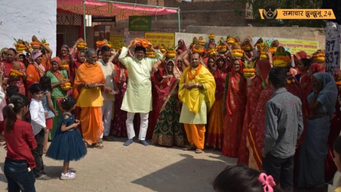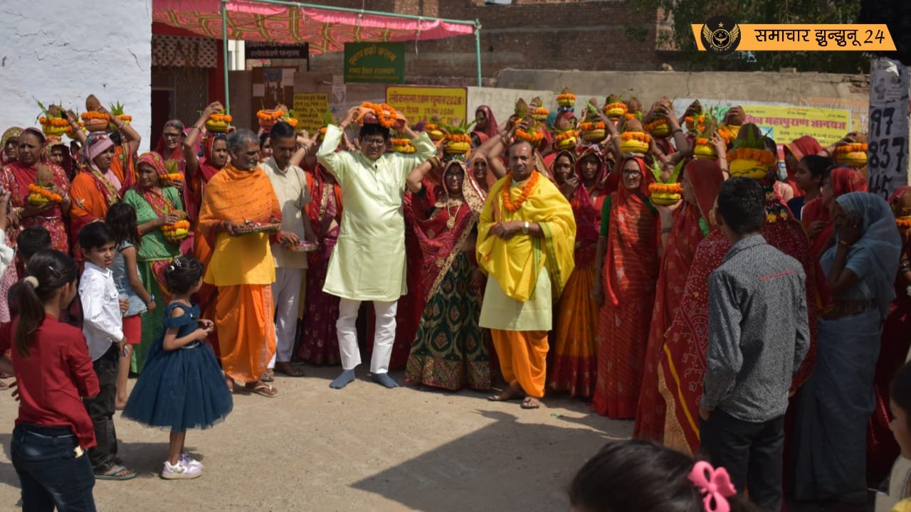 मंदिर में पूजन के बाद यजमानों ने शिव महापुराण और कलश को सिर पर धारण किया और ढाणी के प्रमुख मार्गों से होते हुए कलश शोभायात्रा निकाली गई। इस दौरान श्रद्धालु भगवान शिव के जयकारे लगाते हुए और हरिकिर्तन करते हुए नजर आए। शोभायात्रा मंदिर परिसर में वापस आकर संपन्न हुई।