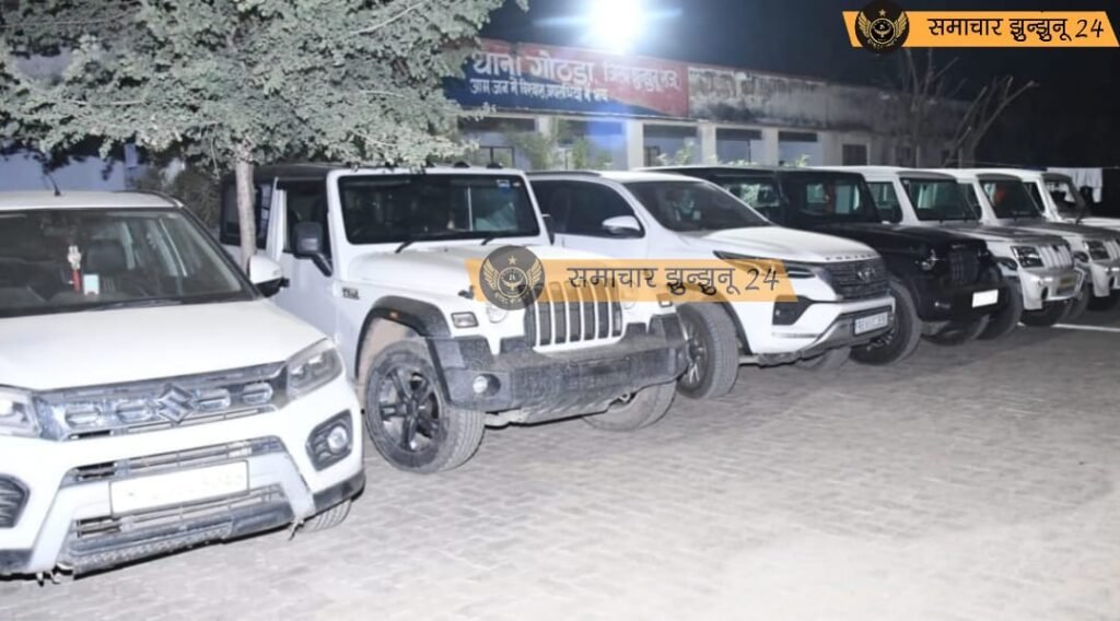 झुंझुनू: जिले के गोठड़ा थाना क्षेत्र में जमीन विवाद ने एक बार फिर संगठित अपराध का खौफनाक चेहरा उजागर कर दिया। श्रवण भादवासी गैंग और रविन्द्र कटेवा गैंग के बीच हुई गैंगवार में हिस्ट्रीशीटर कृष्णकांत उर्फ रविकांत उर्फ गोलू स्वामी की हत्या के बाद जिला पुलिस ने त्वरित और सख्त कार्रवाई करते हुए रविन्द्र कटेवा, विकास बटार, संदीप गिल और पंकज रूलानिया को गिरफ्तार किया है। इस हाई-प्रोफाइल हत्याकांड में पुलिस ने तीन थार, तीन कैम्पर, एक फॉर्च्यूनर और एक ब्रेजा सहित कुल आठ वाहनों को भी जब्त किया है, जबकि फरार आरोपियों की तलाश और अवैध संपत्तियों पर कार्रवाई लगातार जारी है।