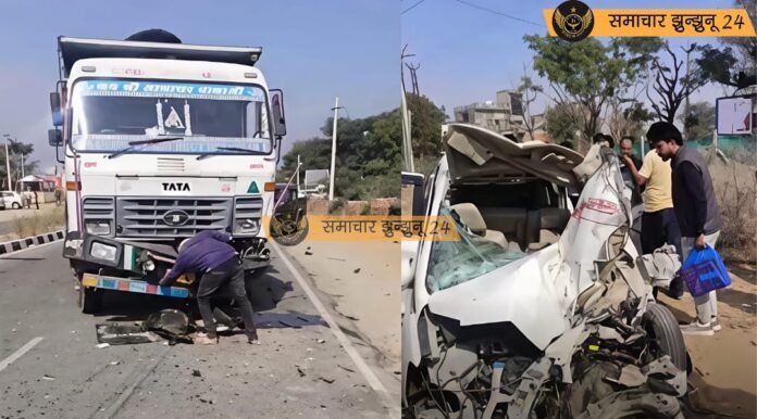 नवलगढ़–डुंडलोड सड़क हादसा: नवजात बच्ची और युवक की दर्दनाक मौत, एर्टिगा कार के परखच्चे उड़े