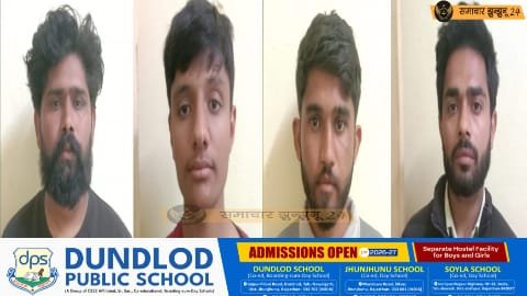 नवलगढ़: थाना क्षेत्र में अवैध हथियारों के खिलाफ पुलिस की सख्त कार्रवाई सामने आई है। माताजी की ढाणी क्षेत्र में रेलवे अंडरपास के पास दबिश देकर पुलिस ने देशी कट्टा, देशी पिस्टल और जिंदा कारतूसों के साथ चार युवकों को गिरफ्तार किया है।