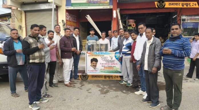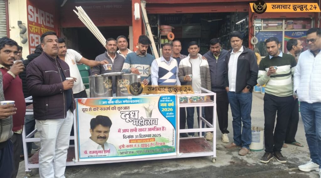 चिड़ावा: युवाओं में बढ़ती नशे की प्रवृत्ति पर रोक लगाने और भारतीय संस्कृति के अनुरूप स्वस्थ जीवनशैली को बढ़ावा देने के उद्देश्य से अंग्रेजी नववर्ष की पूर्व संध्या पर चिड़ावा शहर में दूध महोत्सव का आयोजन किया गया। कार्यक्रम के माध्यम से नागरिकों ने नववर्ष 2026 का स्वागत सामाजिक संदेश के साथ किया। दूध महोत्सव का आयोजन झुंझुनूं रोड स्थित चुंगी नाका नंबर 3 पर युवा विकास मंच, चिड़ावा की ओर से किया गया। आयोजन के दौरान आयोजकों ने उपस्थित लोगों को नववर्ष 2026 की शुभकामनाएं दीं और आपसी सद्भाव, सामाजिक समरसता और एकता का संदेश दिया। आयोजन के दौरान दूध वितरण किया गया और नववर्ष की सकारात्मक एवं स्वास्थ्यवर्धक शुरुआत का आह्वान किया गया। आयोजकों ने कहा कि दूध जैसे पोषक पेय के माध्यम से समाज में स्वास्थ्य के प्रति जागरूकता बढ़ाई जा सकती है और युवाओं को नशे से दूर रखने में ऐसे आयोजनों की अहम भूमिका होती है। कार्यक्रम में संरक्षक संजय नुनिया, कृष्ण स्वामी, अमित लाटा, प्रदीप नेहरा (लोहिया स्कूल), संदीप सैनी, कपिल कटेवा (काशी), विजय मिल, विजेंद्र सैनी, फारुक कुरैशी, संदीप नुनिया और वीरेंद्र झाझडिया (एनएसयूआई) सहित बड़ी संख्या में शहरवासी उपस्थित रहे। युवाओं की सक्रिय भागीदारी के साथ कार्यक्रम को सामूहिक और सकारात्मक पहल के रूप में देखा गया। आयोजन के माध्यम से आयोजकों ने समाज में स्वास्थ्य के प्रति जागरूकता, नशा मुक्ति और आपसी भाईचारे को बढ़ावा देने की बात कही। दूध महोत्सव को नववर्ष की एक सार्थक और प्रेरक शुरुआत के रूप में बताया गया।