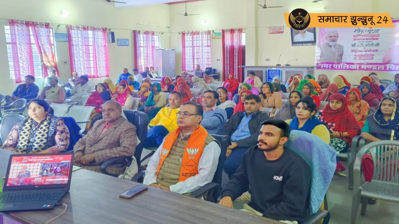 केन्द्र सरकार के नारी शक्ति वंदन अभियान कार्यक्रम के समापन के अवसर पर पिलानी नगरपालिका सभागार में प्रधानमंत्री का वर्चुअल संबोधन लाइव देखा गया। इस अवसर पर पालिका प्रशासन, पार्षद, योजना की लाभान्वित नारी शक्ति भी मौजूद रहीं।