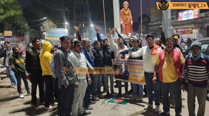 चिड़ावा: हर में उस समय भारी आक्रोश देखने को मिला जब बांग्लादेश में हिंसक भीड़ द्वारा हिन्दू युवक दीपू चंद्र दास की निर्मम हत्या की खबर सामने आई। इस घटना के विरोध में सर्व समाज के लोगों ने विवेकानंद चौक पर एकजुट होकर प्रदर्शन किया और बांग्लादेश के राष्ट्रीय ध्वज को जलाकर अपना रोष प्रकट किया। प्रदर्शन के दौरान दो मिनट का मौन रखकर मृतक युवक को श्रद्धांजलि भी दी गई।