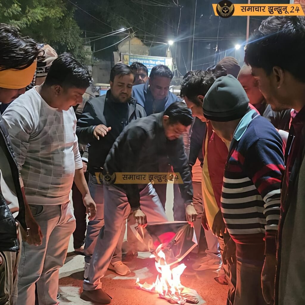 बांग्लादेश में अल्पसंख्यक हिन्दुओं पर हो रहे हमलों के खिलाफ चिड़ावा के विवेकानंद चौक पर बड़ी संख्या में लोग एकत्रित हुए। आक्रोशित नागरिकों ने हत्या की घटना को मानवता पर कलंक बताते हुए नारेबाजी की और बांग्लादेश सरकार से अल्पसंख्यकों की सुरक्षा सुनिश्चित करने की मांग उठाई। विरोध स्वरूप बांग्लादेश का राष्ट्रीय ध्वज जलाया गया, जिससे माहौल बेहद भावुक और आक्रोशपूर्ण हो गया।