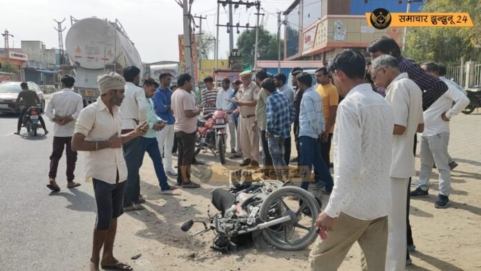 चिड़ावा – सुरजगढ बाईपास तिराहे पर एक बाइक व ट्राॅले मे भिडंत हो गई। बाइक सवार रमेश कुमार पुत्र बजरंग लाल, उम्र 50 साल, नया बास धनौरी (मलसीसर) का रहने वाला है। टक्कर इतनी जबर्दस्त थी कि बाइक चकनाचूर हो गई।
