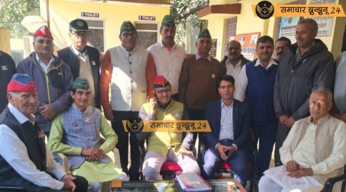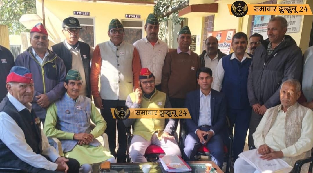 चिड़ावा: सशस्त्र सेना झण्डा दिवस के अवसर पर जिला सैनिक कल्याण बोर्ड चिड़ावा में विशेष सम्मान समारोह आयोजित हुआ, जिसमें कर्नल सुरेश जांगिड़ ने देश की रक्षा में महत्वपूर्ण भूमिका निभाने वाले पूर्व सैनिकों और वीर परिवारों का गर्मजोशी से स्वागत किया। कार्यक्रम में देशभक्ति का गूंजता माहौल देखने को मिला और सैनिक कल्याण के संकल्प को दोहराया गया।