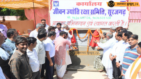 सूरजगढ़ नगरपालिका चेयरमैन पुष्पा गुप्ता ने जीवन ज्योति रक्षा समिति के कार्यालय निर्माण के लिए नींव रखी और शिलान्यास पत्थर का फीता काटकर उद्घाटन किया। कार्यक्रम का संचालन डॉ. अनिल अनमोल ने किया।