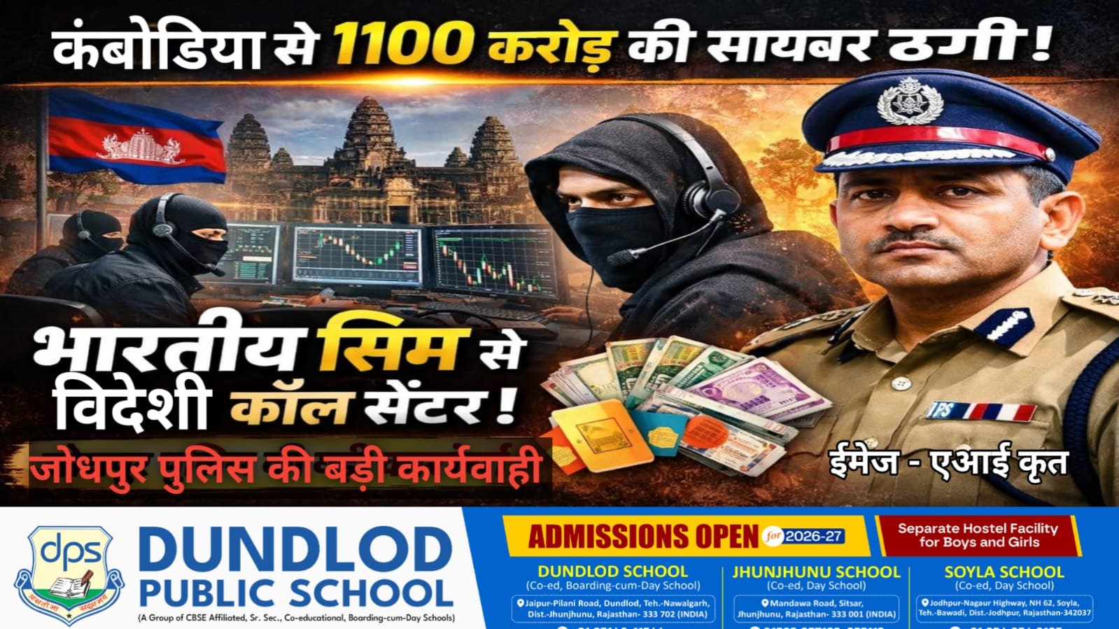 1100 करोड़ का अंतरराष्ट्रीय साइबर फ्रॉड बेनकाब: कंबोडिया से भारतीय सिमों पर चल रहा था ठगी का कॉल सेंटर, जोधपुर पुलिस की बड़ी कार्रवाई