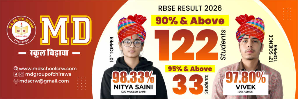 एम. डी. ग्रुप ऑफ एजुकेशन चिड़ावा क्षेत्र में शिक्षा के क्षेत्र में नवाचार और उत्कृष्ट परिणामों के लिए अपनी अलग पहचान बना चुका है। संस्थान में IIT, NEET और बोर्ड परीक्षाओं के लिए फाउंडेशन और टारगेट कक्षाएं संचालित की जा रही हैं, जिससे छात्रों को प्रतिस्पर्धी परीक्षाओं के लिए मजबूत आधार मिल रहा है।
